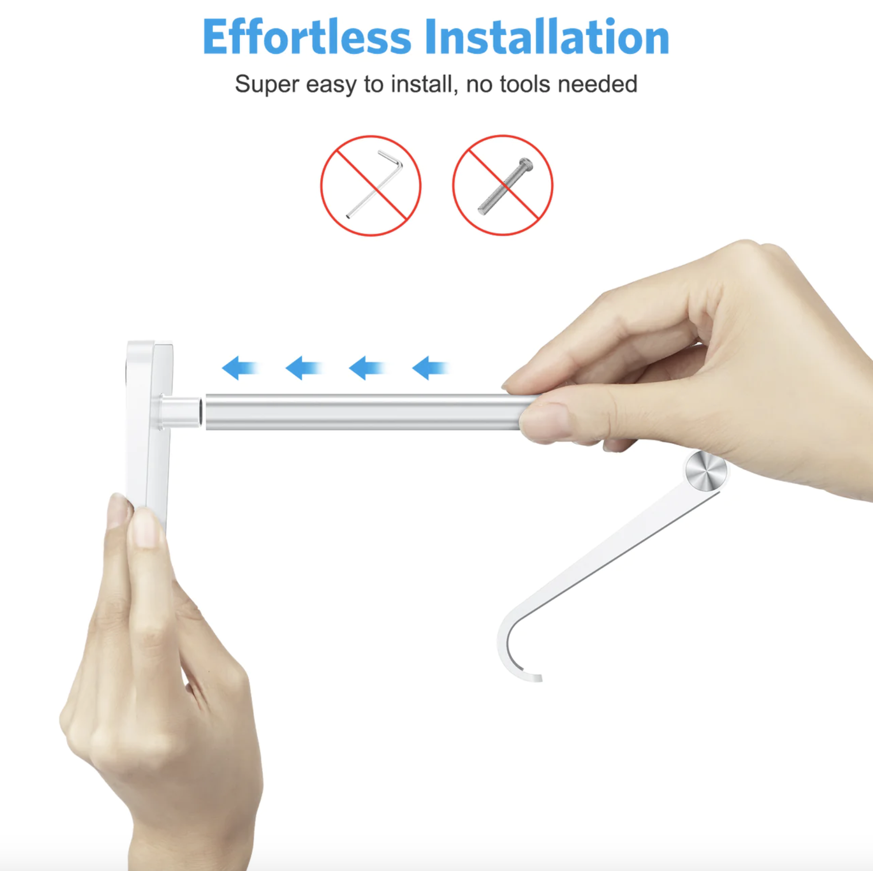 • Einfache Installation. Der Telefonständer lässt sich leicht zusammenbauen, indem man einfach auf die Aluminiumstange klopft. Mit seinem kompakten und leichten Design ist es ein ideales Produkt für diejenigen, die häufig reisen.